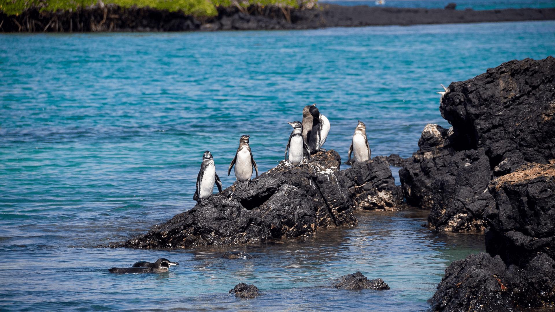 Es muy común observar iguanas, tortugas y lobos marinos, piqueros de patas azules, rayas. tiburones tintoreras y variedad de peces. Entre la fauna nativa y endémica, destaca las plantas de nolana, mangle jelí y mangle blanco.